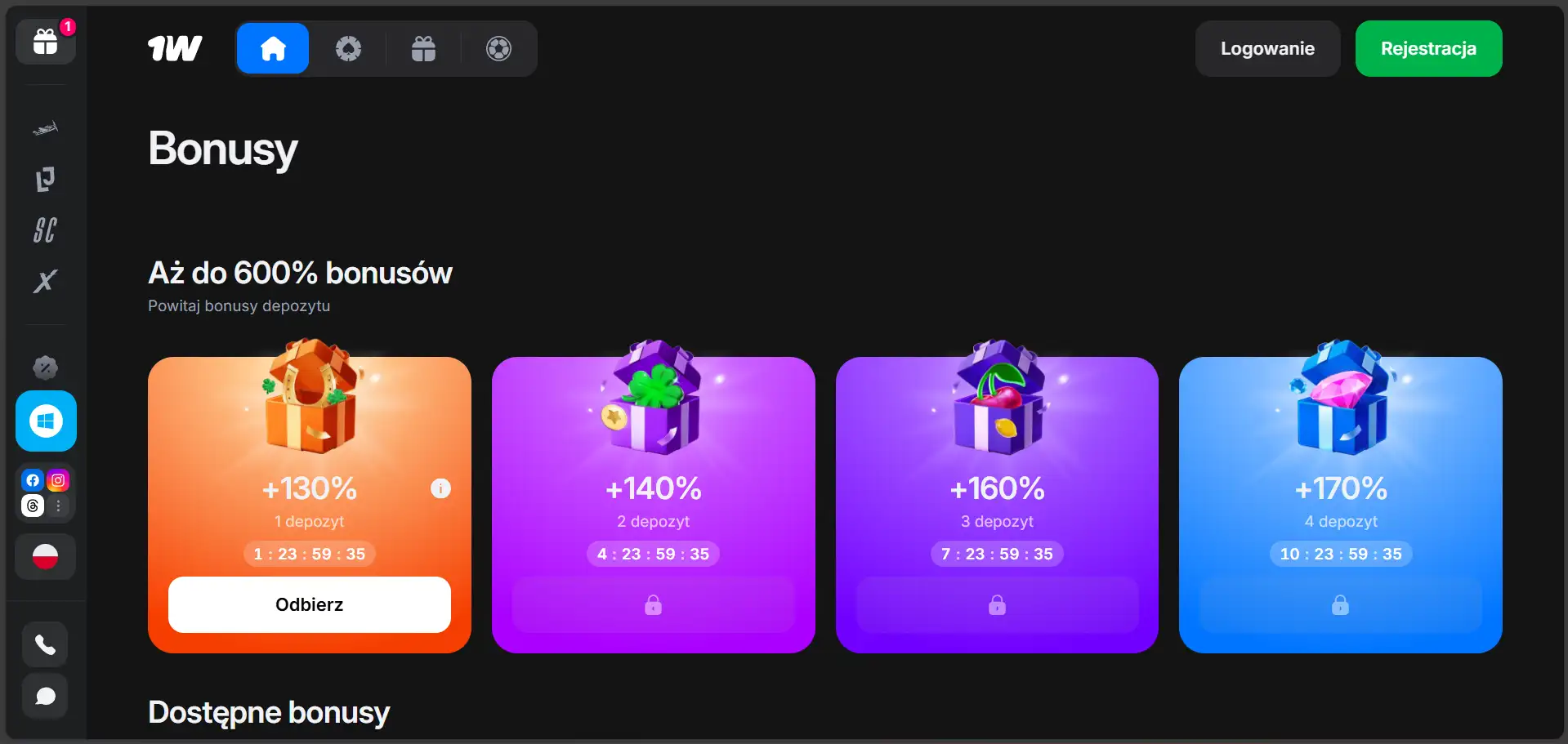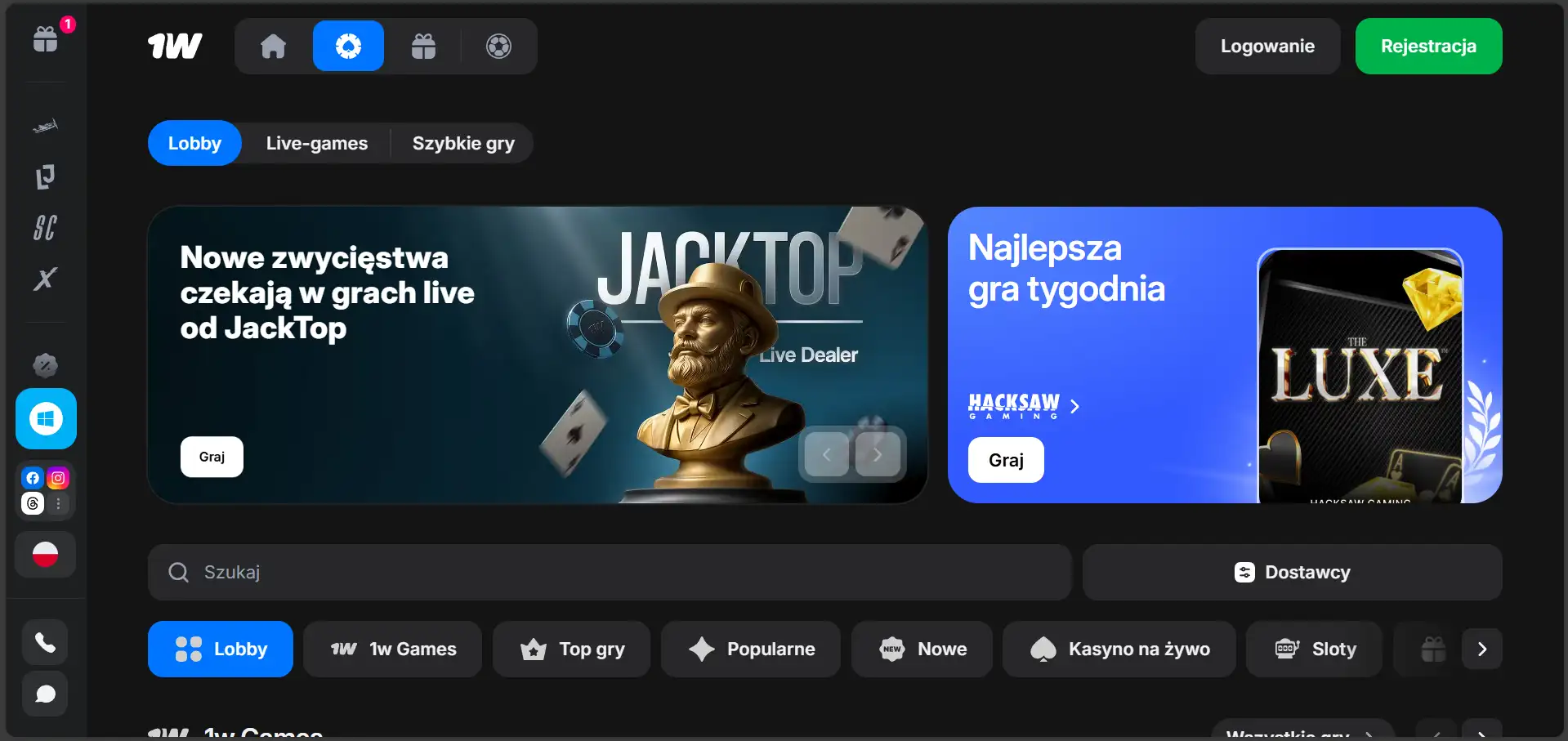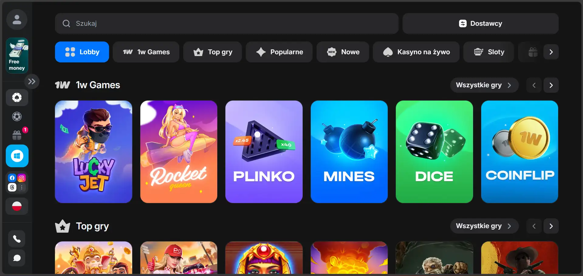 Nawigacja w lobby 1Win dla graczy z Polski jest intuicyjna – proste menu, szybkie ładowanie i wyraźne miniatury ułatwiają wybór. Wszystkie gry można filtrować według dostawcy, kategorii lub wyszukiwać po nazwie.