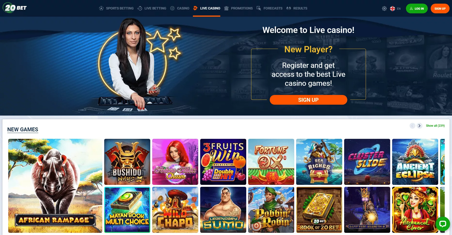 Kasyno na żywo obejmuje wszystkie gry stołowe oferowane w 20Bet, ponieważ nie ma nic lepszego niż gra w zaciszu własnego domu przy tym samym poziomie emocji.