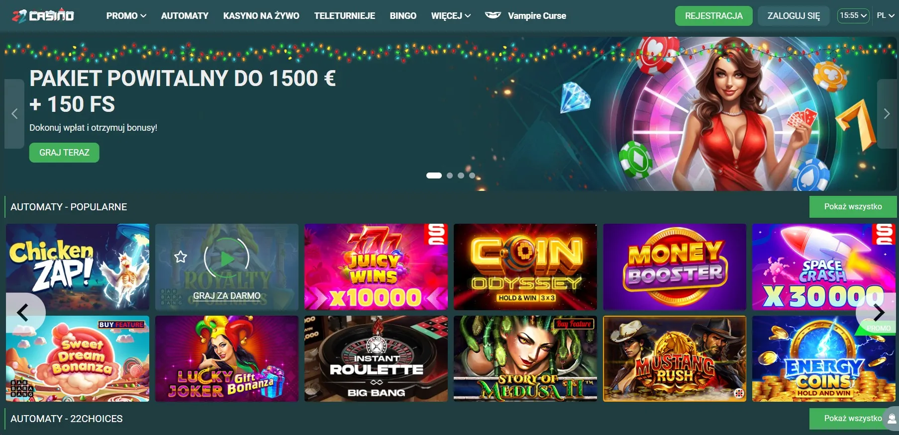 Kasyno online 22Casino działa od 2018 roku. Serwis udostępnia ponad 10 000 gier, w tym automaty, stoły karciane i sekcję live casino. Platforma oferuje aplikację na iOS i Android, a program VIP przewiduje cashback do 11%. Dostępne są szybkie metody płatności i całodobowa obsługa klienta w języku polskim. Gry pochodzą od renomowanych dostawców. Strona kasyna jest przetłumaczona na ponad 60 języków. Poniższa recenzja 22Casino dla polskich graczy w 2025 roku szczegółową przedstawia ofertę operatora.