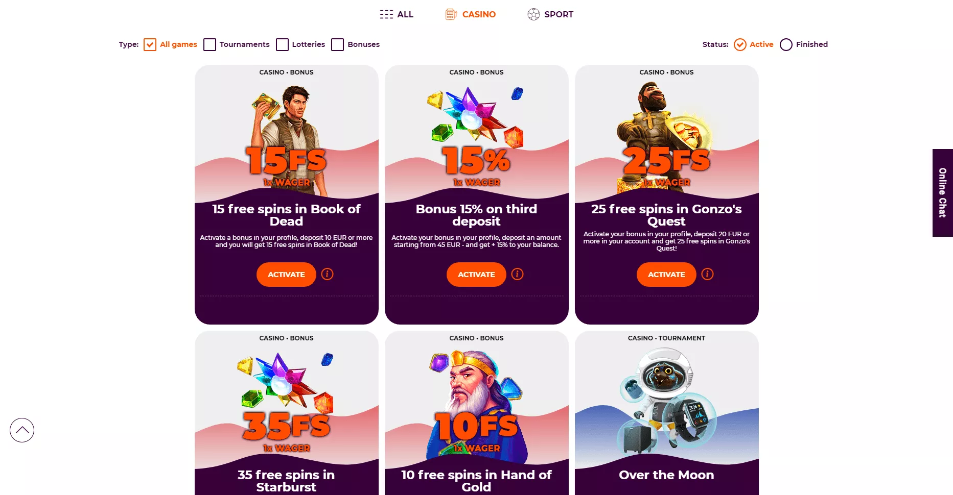Fajna strona z fajnym przyjaznym designem. Podoba mi się, że wszystko jest pod ręką! Oferty bonusowe są różnorodne i masz z czego wybierać. Miałem problem z ofertą darmowych spinów (nie aktywowałem jej przed dokonaniem płatności), ale pomoc techniczna kasyna pomogła mi prawie natychmiast. Nic, tylko polecić!