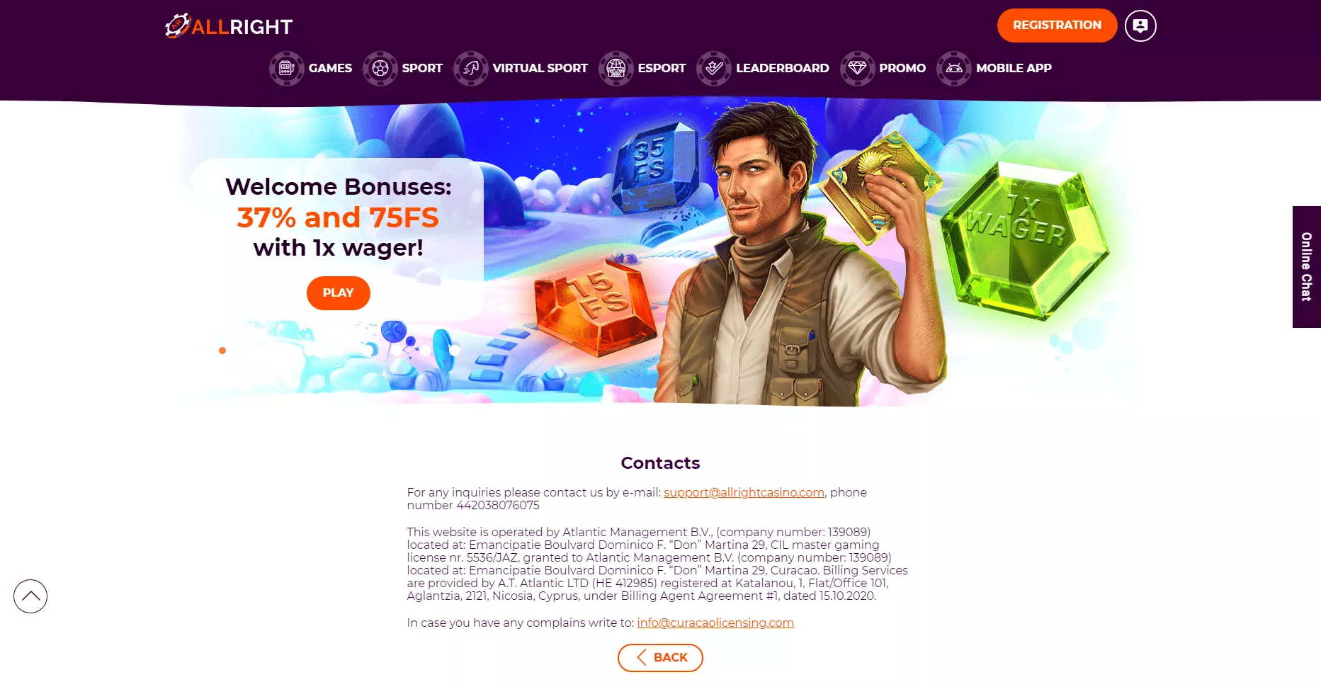 E-mail: Kontakt przez pl_support@allrightcasino.com.