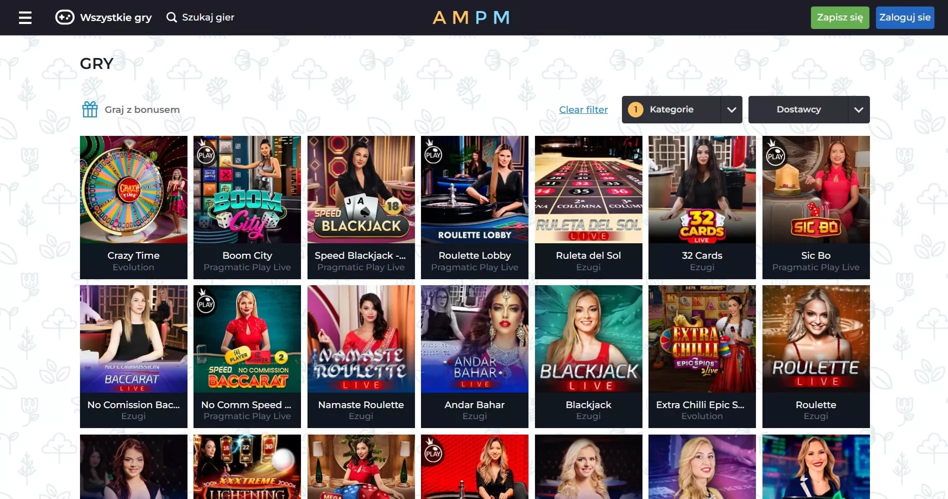 Kategorie gier na prawdziwe pieniadze w AMPM Casino: