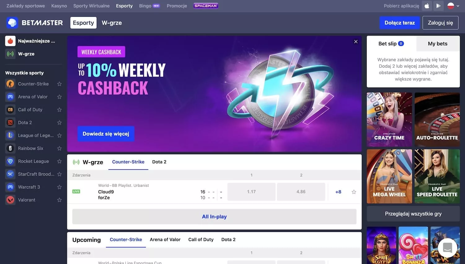 Betmaster współpracuje z ponad 25 dostawcami gier, aby każdy znalazł takie gry, jakie lubi. Najpopularniejsze z nich to Evolution Gaming, NetEnt, Microgaming, Evoplay, Play n Go i Pragmatic Play.