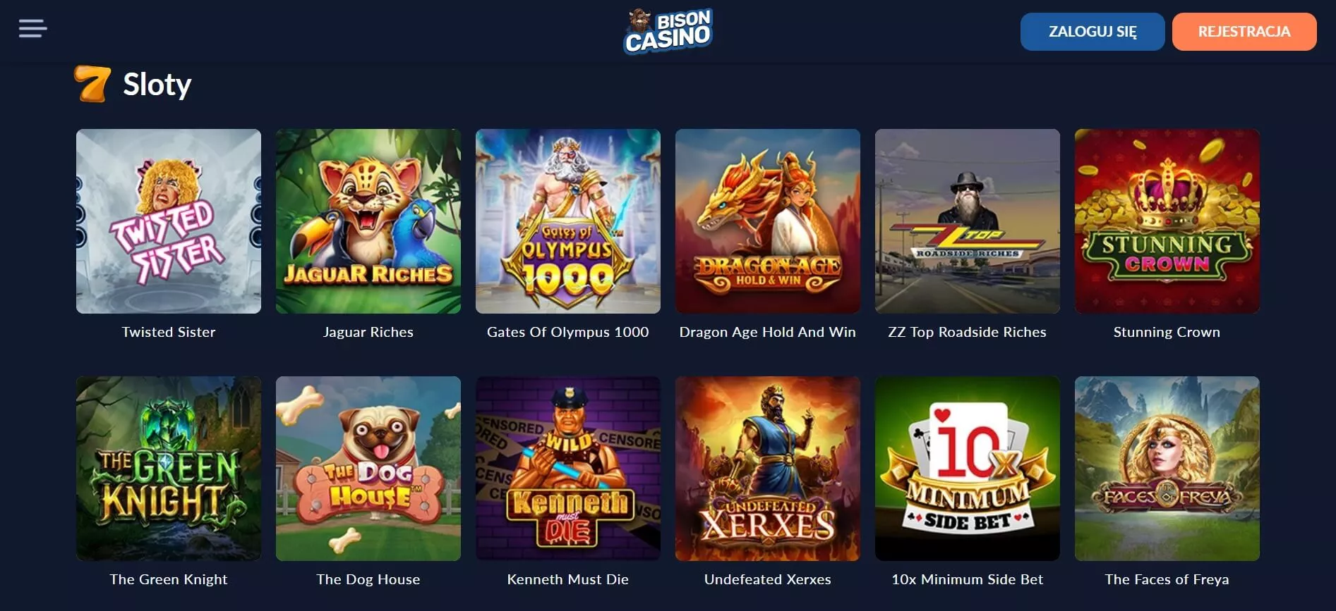 Wybór gier w kasynie Bison