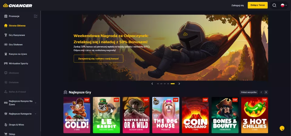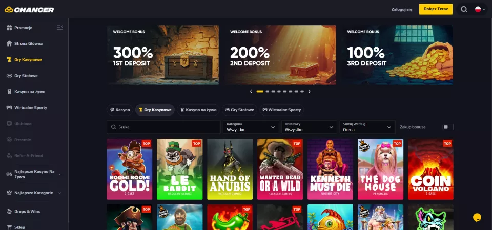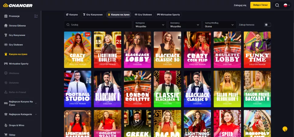 Na platformie gracze mają dostęp do szerokiego katalogu gier, który obejmuje sloty, gry na żywo w Chancer-bet, gry stołowe oraz gry stołowe. Biblioteka zawiera ponad 9000 tytułów, oferując niezliczoną liczbę opcji do wyboru.