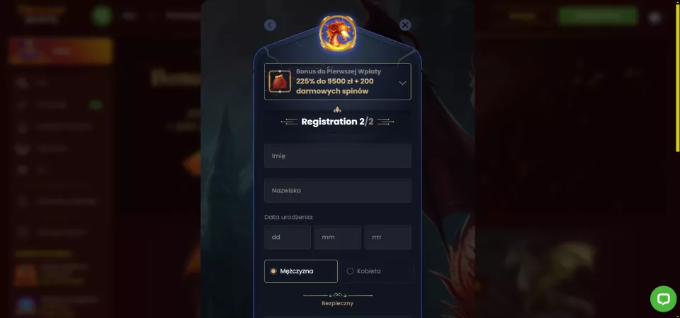 225% do 9500 PLN i 200 free spinów.