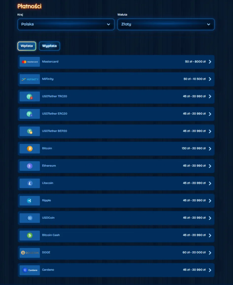 Dla fanów szybkich transakcji optymalnym wyborem są kryptowaluty. Zwolennicy tradycyjnych rozwiązań mogą skorzystać z klasycznych przelewów bankowych.
