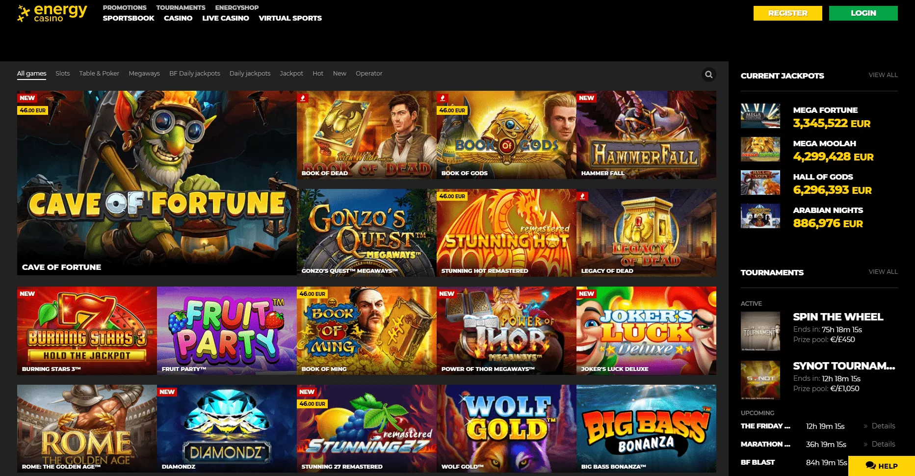 W Kasyno Energy gra online, ta kategoria gier jest najobszerniejsza i obejmuje ponad 5000 różnorodnych gier od aż 55 dostawców oprogramowania. W Energy automaty do gier na pieniądze, gracze znajdą takie podkategorie gier slotowych jak: