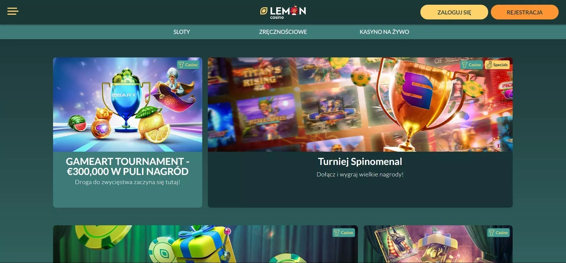 Nasi eksperci przeanalizowali rodzaje gier dostępne na platformie Lemon Casino, zwracając uwagę na szeroki wybór tytułów, ich jakość oraz dostępność wersji mobilnej. Według naszych testów casino Lemon oferuje ponad 4800 gier kasynowych, co zapewnia duży wybór zarówno dla początkujących, jak i bardziej wymagających graczy. W ofercie dostępne są sloty, gry stołowe, gry karciane, kasyno na żywo oraz liczne gry hazardowe online od najlepszych dostawców gier. Tak szeroki wybór pozwala znaleźć zarówno klasyczne tytuły, jak i nowe gry publikowane przez czołowe studia.