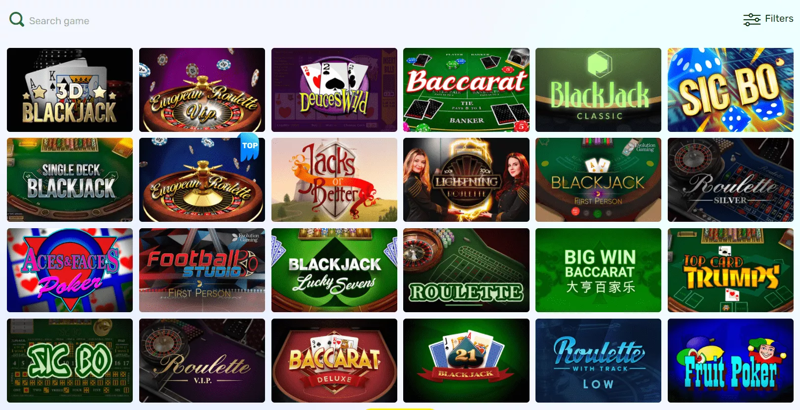 Miłośnicy bakarata mogą spróbować szczęścia grają w Baccarat Deluxe, Big Win Baccarat czy RNG First Person Baccarat. Równie duży wybór czeka na fanów blackjacka. Dostępne są między innymi: 3D Blackjack, Blackjack Royal Pairs, Single Deck Blackjack czy Double Exposure BlackJack MH. Zarówno w przypadku bakarata, jak i blackjacka, lista dostępnych opcji gier jest długa.