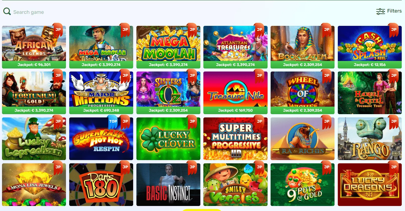 W katalogu gier w kasynie można znaleźć automaty online, jackpoty, gry mobilne, gry na żywo oraz inne gry. Wybrany tytuł można znaleźć, wybierając miniaturkę z listy gier, wpisując nazwę gry w pasku wyszukiwania, sortując alfabetycznie, filtrując po dostawcy lub motywie przewodnim, a nawet funkcjach specjalnych.