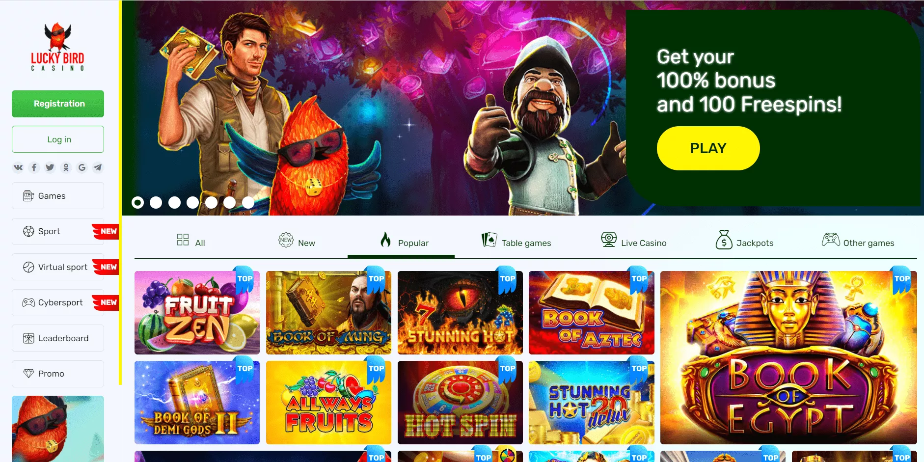 Lucky Bird kasyno internetowe posiada niezwykle bogaty katalog gier od praktycznie wszystkich renomowanych dostawców. Można tu znaleźć najlepsze automaty online, gry stołowe, gry na żywo, a także bingo i wirtualne sport. Lucky Bird kasyno online organizuje także liczne turnieje i loterie dla graczy.