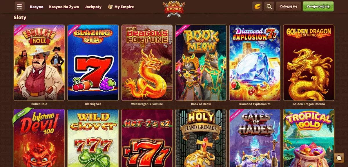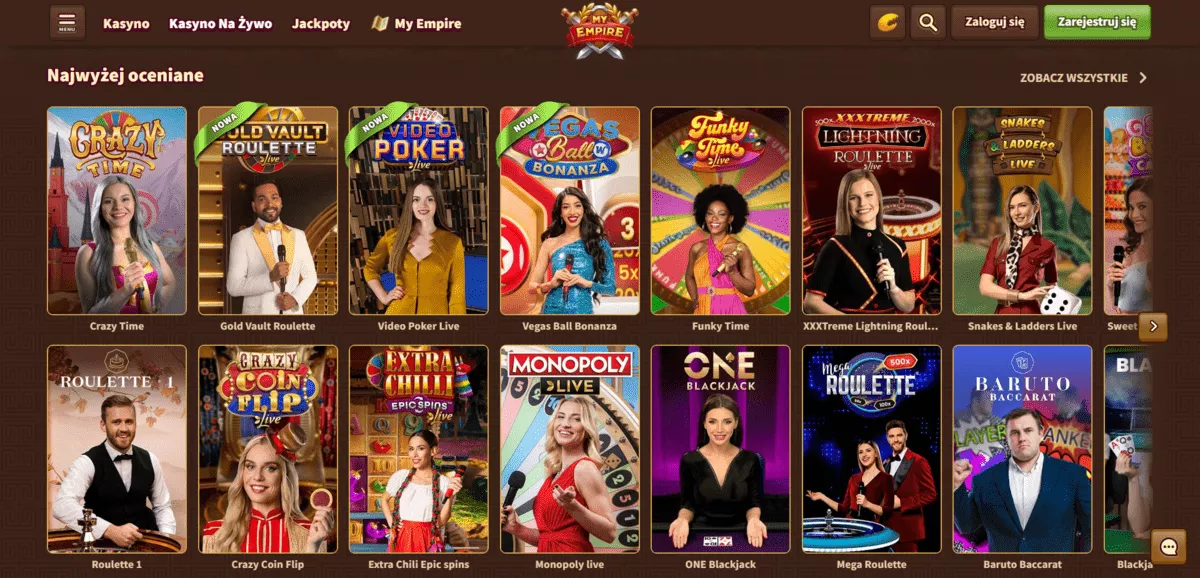 Kasyno online MyEmpire wyróżnia się na polskim rynku, oferując imponującą liczbę gier oraz świetne stoły na żywo. Gracze w Polsce mogą cieszyć się także: