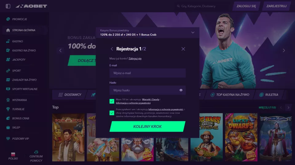 Proces logowania w Naobet przebiega poprzez główny panel użytkownika widoczny w prawym górnym rogu strony. Wymagane jest podanie adresu e-mail oraz hasła utworzonego podczas rejestracji. System rozpoznaje lokalizację i język gracza, automatycznie dostosowując wersję strony do preferencji użytkownika.
