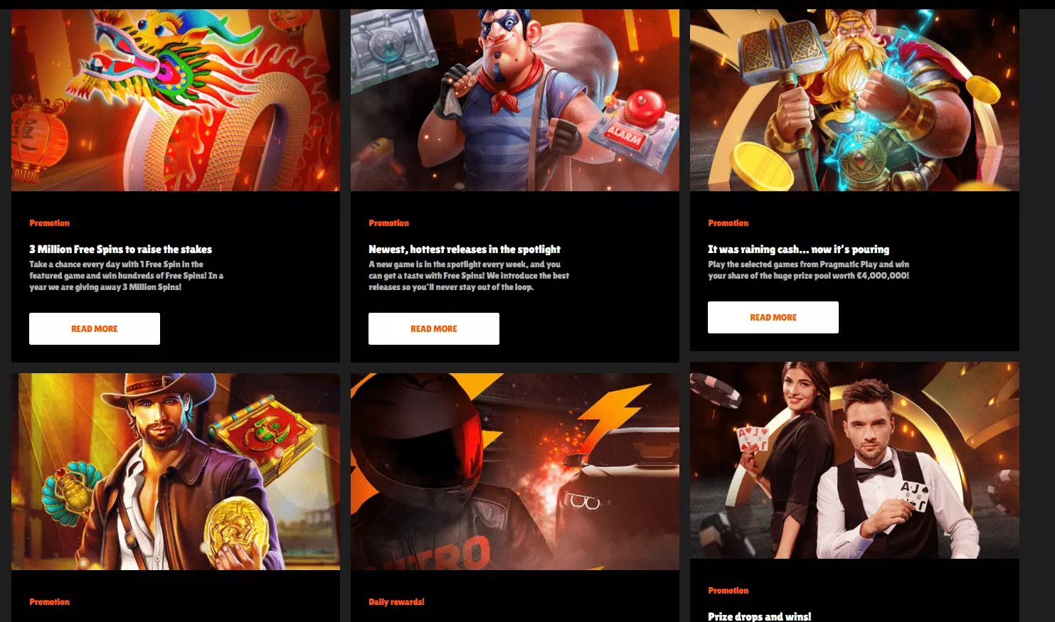 Dodatkowa oferta bonusowa Nitro Casino w postaci free spinów lub drobnego gotówkowego upominku (wager 50x) czeka na każdego gracza, który wpłaci i zrealizuje tutaj minimalny wymagany depozyt.