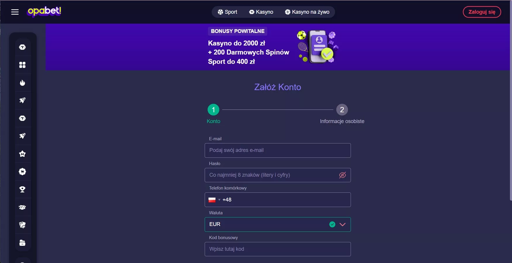 Aby zalogować się do kasyna OpaBet, przejdź na stronę główną i kliknij przycisk „Zaloguj się” w prawym górnym rogu. Dalej wpisz swój adres e-mail oraz hasło użyte podczas rejestracji i zatwierdź formularz.