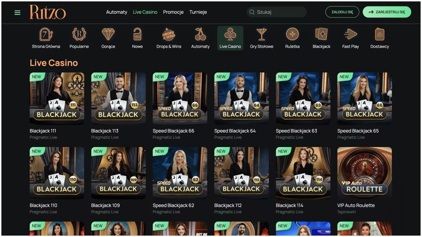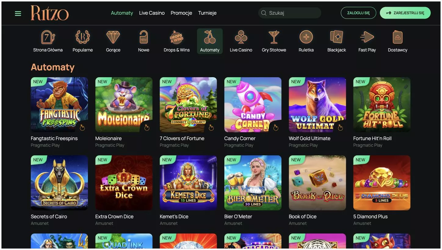 To kasyno dla polskich graczy zapewnia dostęp do ponad 3000 gier hazardowych, które obejmują sloty, gry stołowe oraz gry na żywo. Polacy mogą spodziewać się tutaj średniego RTP na poziomie 95%, a liczba dostawców oprogramowania przekracza 50. Poznaj najlepsze Ritzo gry na pieniądze:
