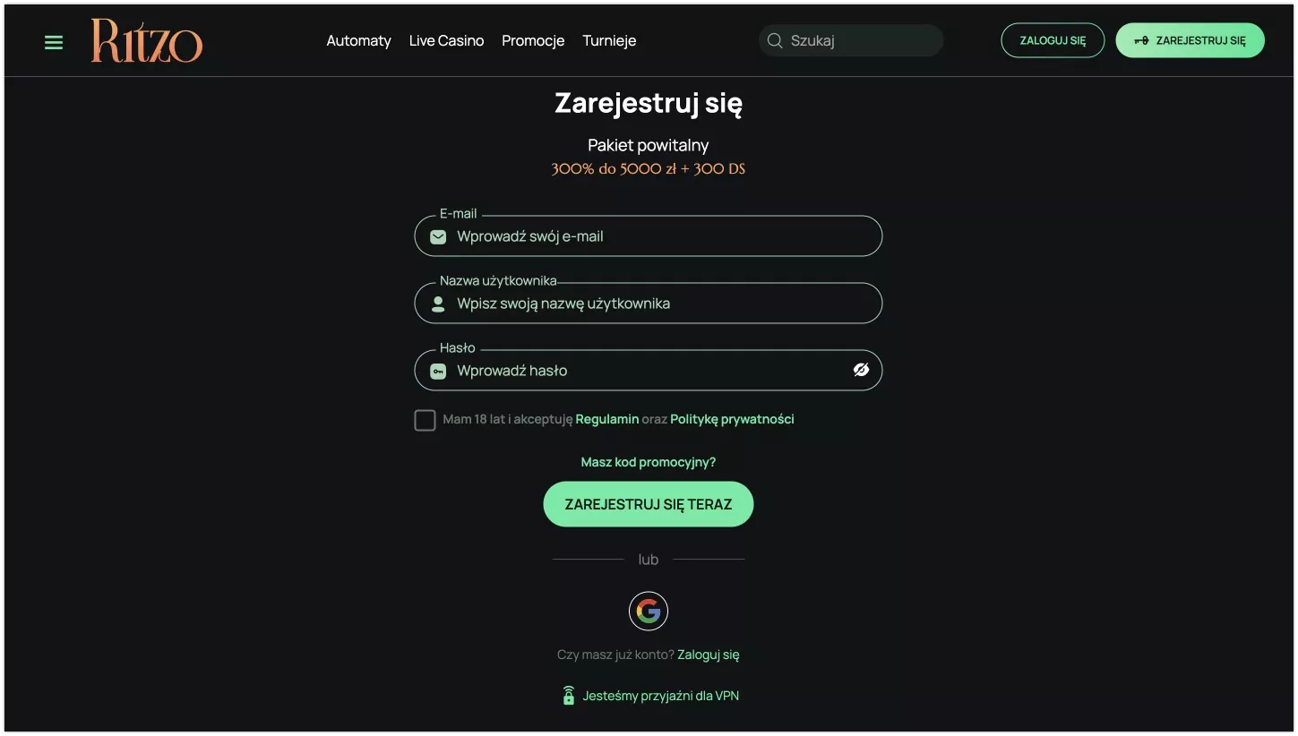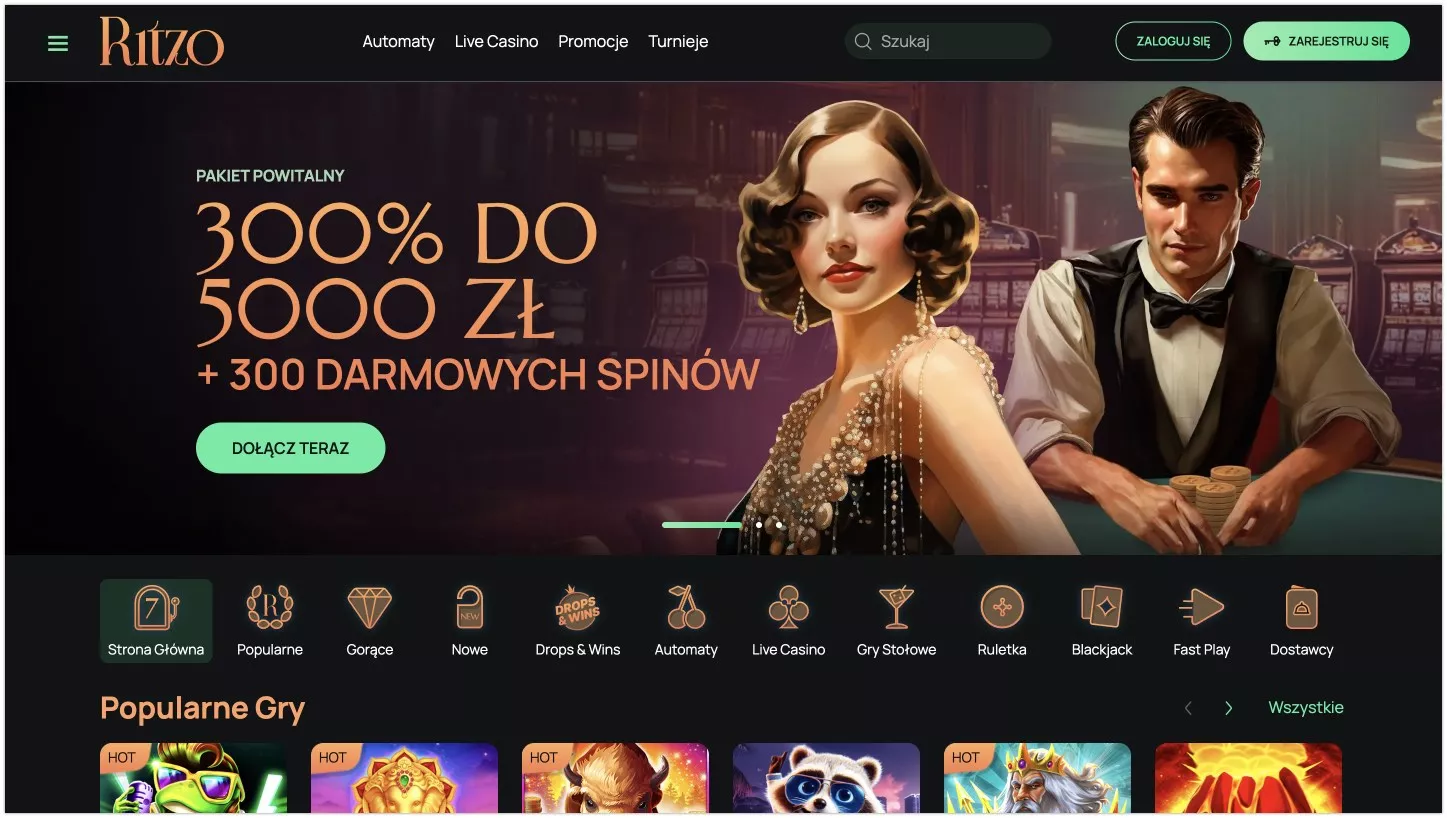 Platforma hazardowa działa na rynku od 2023 roku, dostarczając polskim graczom łącznie kilka tysięcy gier hazardowych do wyboru. Do tego dochodzi atrakcyjna promocja powitalna 300% do 5000 zł i 300 darmowych spinów, zaufane opcje płatności dla Polaków jak Skrill czy Visa, a także inne elementy oferty, które pokrywa niniejsza Ritzo recenzja. Zapoznaj się z ofertą kasyna w naszej recenzji i odbierz swój bonus na Dobramine.