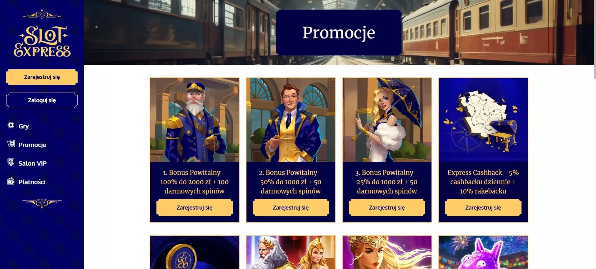 Operator hazardowy posiada w swoim asortymencie oferty powitalne, cashback, a także codzienne misje z nagrodami. Każdy bonus ma określone warunki, które należy spełnić, aby skorzystać z promocji. Dostępne bonusy w kasynie SlotExpress w 2025 roku dla graczy z Polski obejmują:
