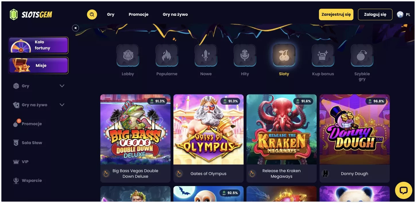 SlotsGem to nowoczesne kasyno online, założone w 2024 roku, które należy do firmy LATCAS B.V. Kasyno oferuje polskim graczom szeroki wybór gier, w tym ponad 10 000 tytułów, oraz atrakcyjny pakiet powitalny, który może sięgnąć nawet 6000 PLN i 225 darmowych spinów. Dodatkowo kasyno wyróżnia się wyjątkowym programem VIP, który posiada aż 50 poziomów, oraz różnorodnymi misjami i osiągnięciami, które umożliwiają graczom zdobywanie nagród. W tej recenzji kasyna SlotsGem dla polskich graczy w 2026 roku przyjrzymy się szczegółowo temu, co oferuje ten operator i czy warto zarejestrować się na platformie.