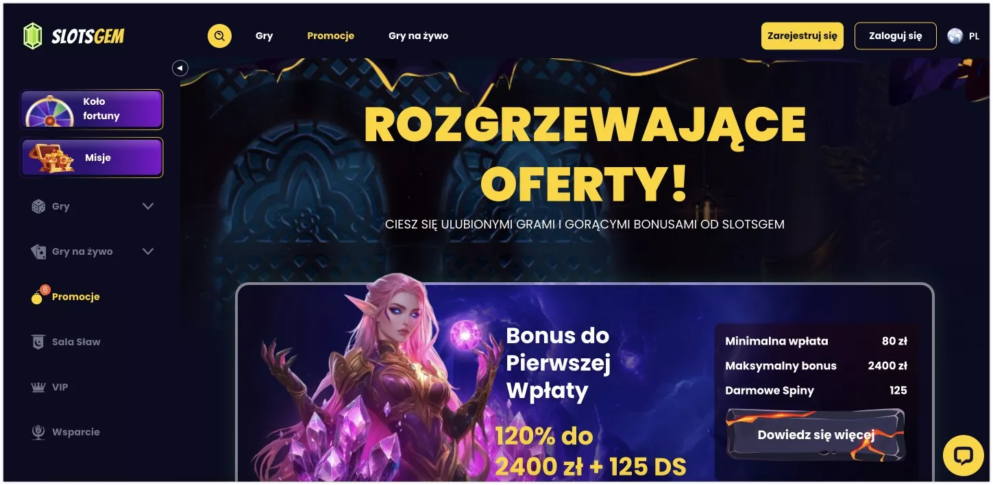 SlotsGem Casino regularnie aktualizuje promocje, dlatego warto na bieżąco sprawdzać dostępne oferty. Szczegółowe warunki bonusów, w tym wymagania dotyczące obrotu i ograniczenia czasowe, można przeczytać w regulaminie na oficjalnej stronie kasyna.