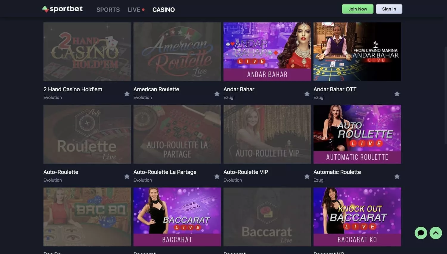 W Sportbet casino gry są podzielone na tradycyjne kategorie, czyli na: