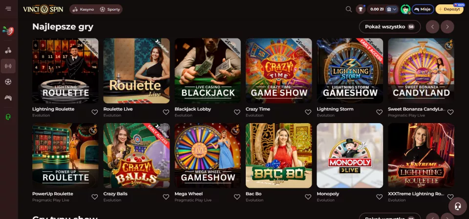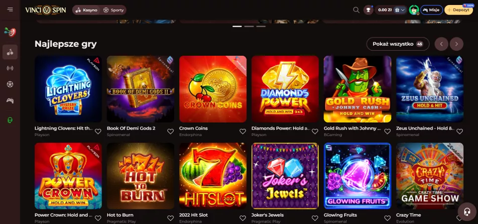 Gry kasynowe w kasyno VinciSpin