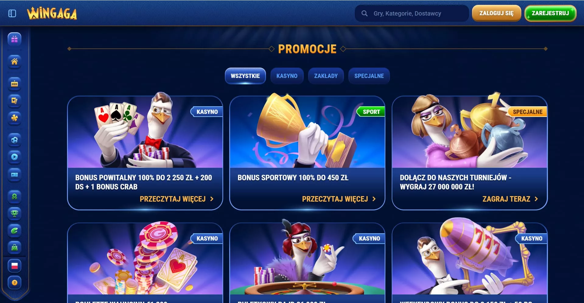 Oprócz wymienionych bonusów WinGaga kasyno oferuje swoim użytkownikom turnieje, wyzwania, sklep z nagrodami i unikalną promocję Bonus Crab.