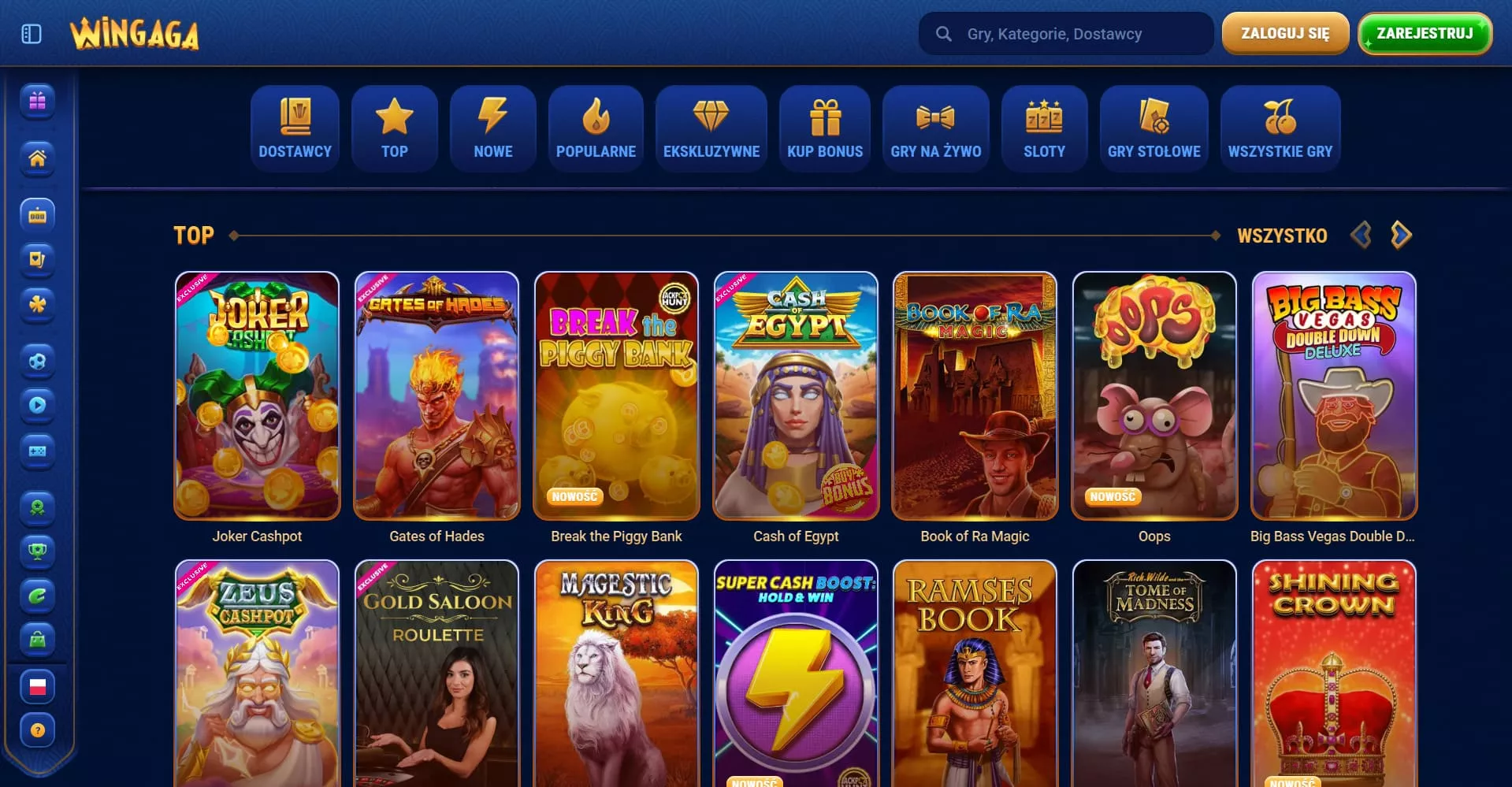 Kasyno WinGaga oferuje ponad 4000 gier kasynowych od 82 różnych dostawców oprogramowania. Gracze mają dostęp do zróżnicowanych kategorii, obejmujących takie WinGaga gry kasynowe: