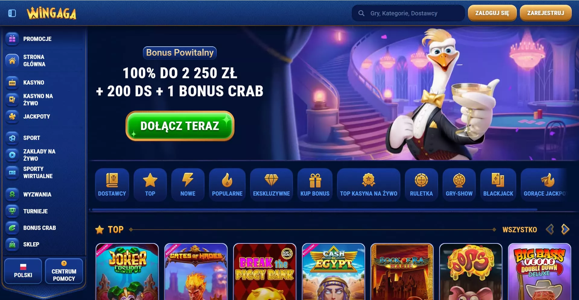 WinGaga to kasyno online założone w 2024 roku, należące do firmy NovaForge LTD. Platforma oferuje ponad 4000 gier od wielu dostawców, w tym automaty, gry stołowe oraz kasyno na żywo. Dostępna jest dedykowana aplikacja mobilna umożliwiająca wygodne logowanie i grę na urządzeniach mobilnych. Kasyno posiada 5-poziomowy program VIP z dodatkowymi korzyściami dla stałych graczy. Bonus powitalny obejmuje do 2250 PLN i 200 darmowych spinów. Niniejsza recenzja kasyna WinGaga dla polskich graczy w 2025 roku przedstawia szczegóły oferty tego operatora dla polskich graczy.
