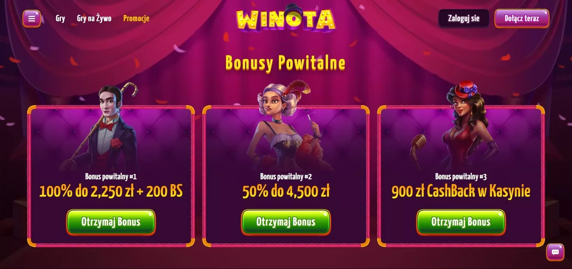 Nie potrzebny jest do tego żaden Winota casino bonus code ani Winota casino promo code. Oprócz tego bonusu, można także otrzymać premie w ramach programu lojalnościowego, stworzonego dla graczy typu VIP, w którym zbierając punkty, awansuje się w hierarchi, a dzięki temu, klient otrzymuje dodatkowe benefity. W chwili obecnej nie ma w Winota casino bonusu bez depozytu.