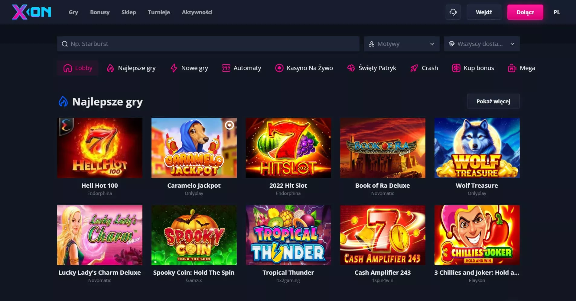 Platforma posiada imponującą bibliotekę ponad 6000 gier od 93 dostawców. Gry w kasynie Xon Bet obejmują takie kategorie: gry stołowe, gry na żywo, crash, automaty, kup bonus, megaways. Najlepsze gry w kasynie zostały zebrane w poniższym zestawieniu.