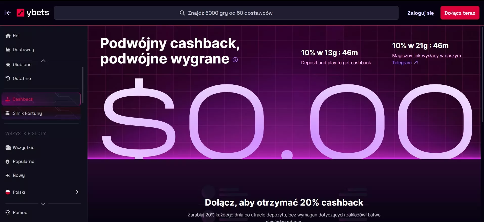 Kasyno Ybets oferuje graczom możliwość uzyskania zwrotu gotówki w wysokości do 20%, dzięki dwóm korzystnym formom cashbacku: